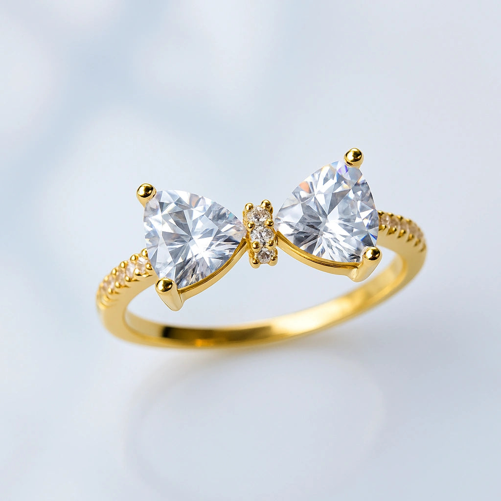 Anti Tarnish Bow Crystal Ring – Gold Finish | Waterproof