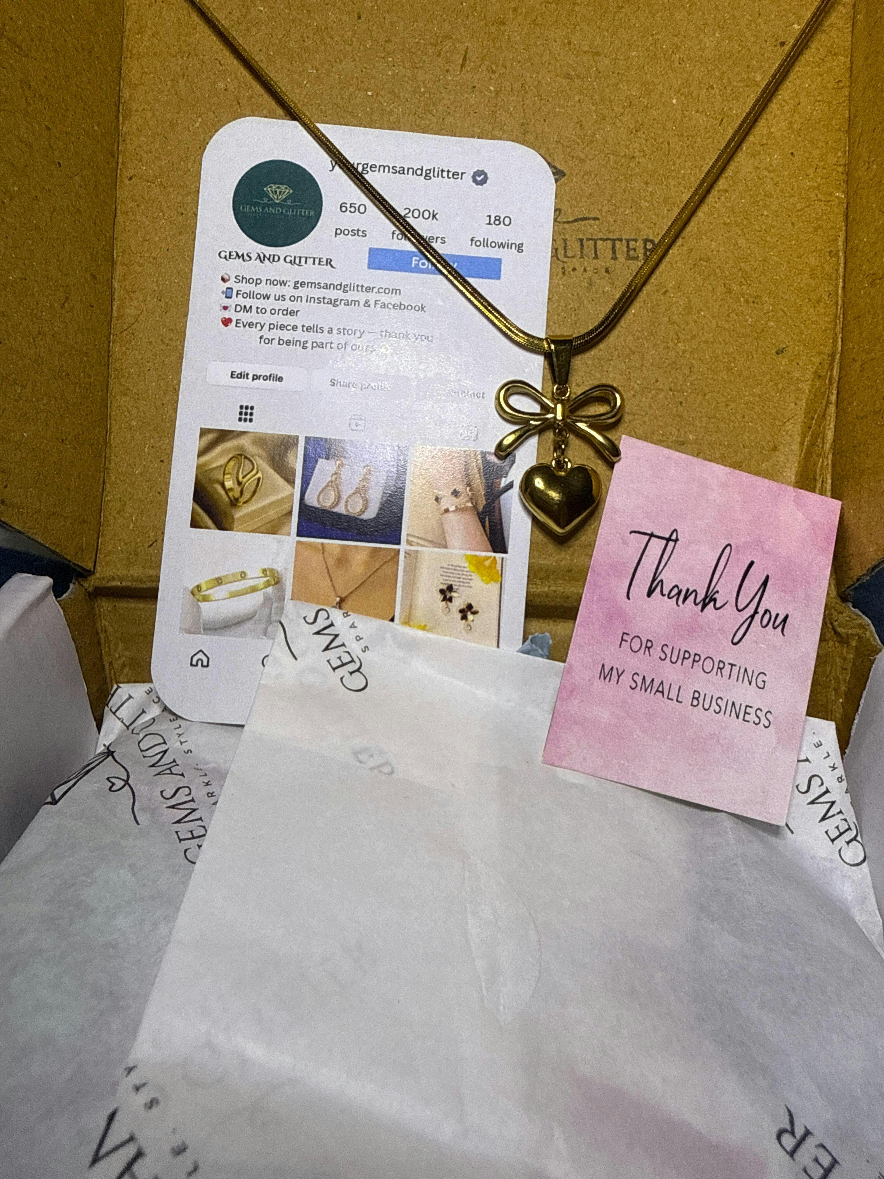 Why Choose Golden Heart & Bow Pendant Necklace – Anti-Tarnish